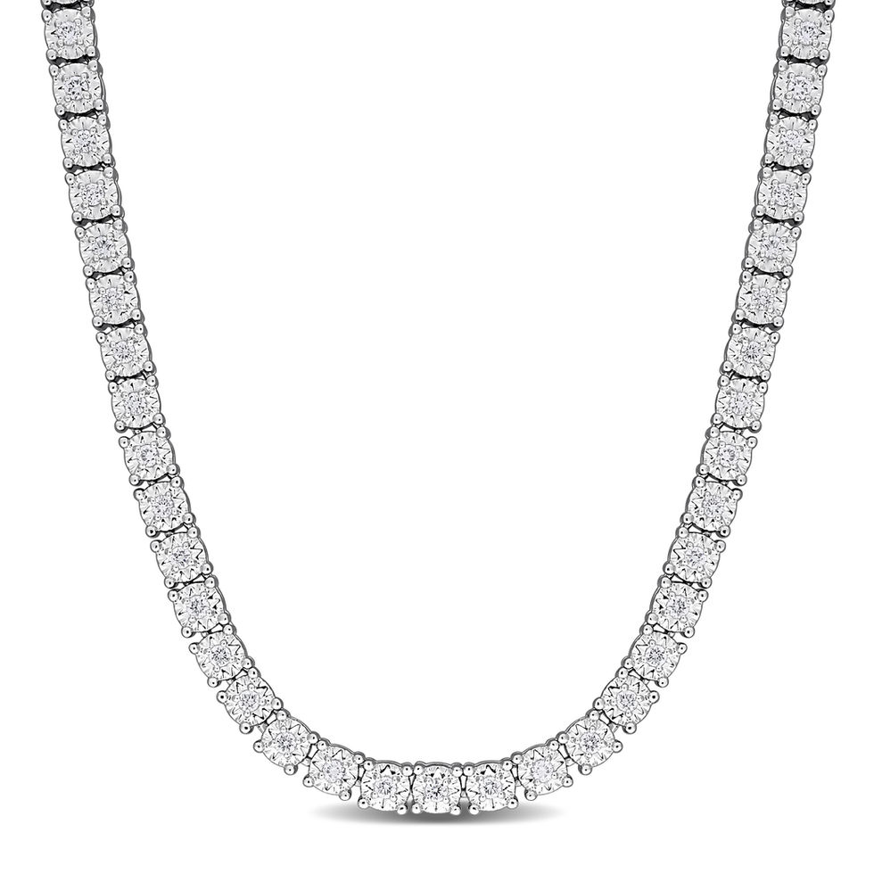 Elevate your style with this 2 3/5 ct TW Lab-Grown Diamond Tennis Necklace crafted in sterling silver. The 22-inch design features a continuous line of brilliant lab-grown diamonds for a classic, polished look, effortlessly catching the light with every movement. Perfect for adding lasting sparkle to both everyday and special occasions.