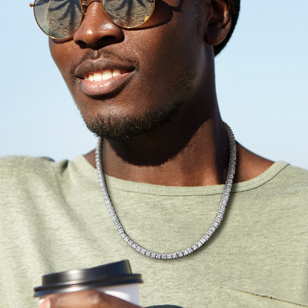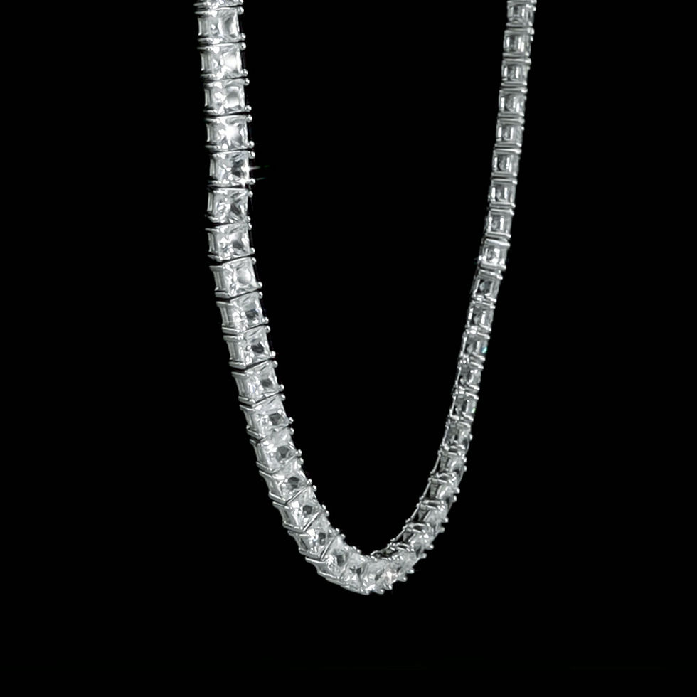 The Men's 44 CT TGW 4mm Square Created White Sapphire Necklace with Box Clasp, a romantic and sophisticated piece from the Men's collection that exudes timeless elegance and refined style. This exceptional necklace is expertly crafted in sterling silver, creating a classic and versatile accessory for any gentleman. Showcasing a stunning array of 4mm square created white sapphires, this necklace boasts a total gem weight of 44 carats. The dazzling white sapphires radiate a luminous brilliance, making it a perfect gemstone piece or fashion statement for the discerning gentleman in your life.