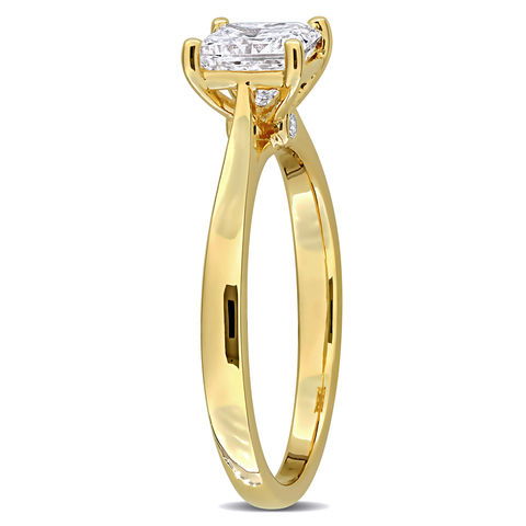 Let your heart overflow with passion with the Women's 1ct TW Lab-Grown Diamond Solitaire Engagement Ring. Crafted in yellow plated sterling silver, it features a 6x6mm princess-cut lab-created diamond at the center, accented by 1.5x1.5mm round-cut created diamonds in a bezel setting, all with VS1;VS2 clarity, on a 1.7mm band. Each facet sparkles with devotion, elegance, and timeless romance, making it a cherished symbol of love. Designed for both comfort and sophistication, it is perfect for life's most unforgettable moments.